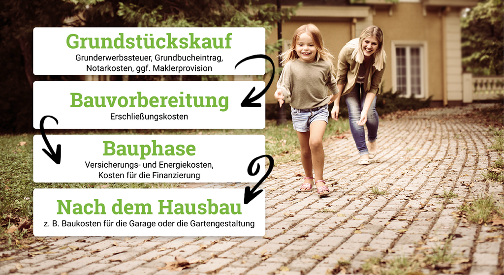 Generell fallen Nebenkosten für den Hausbau in diesen Phasen an: